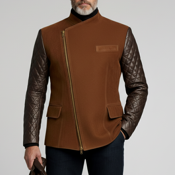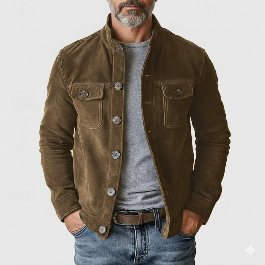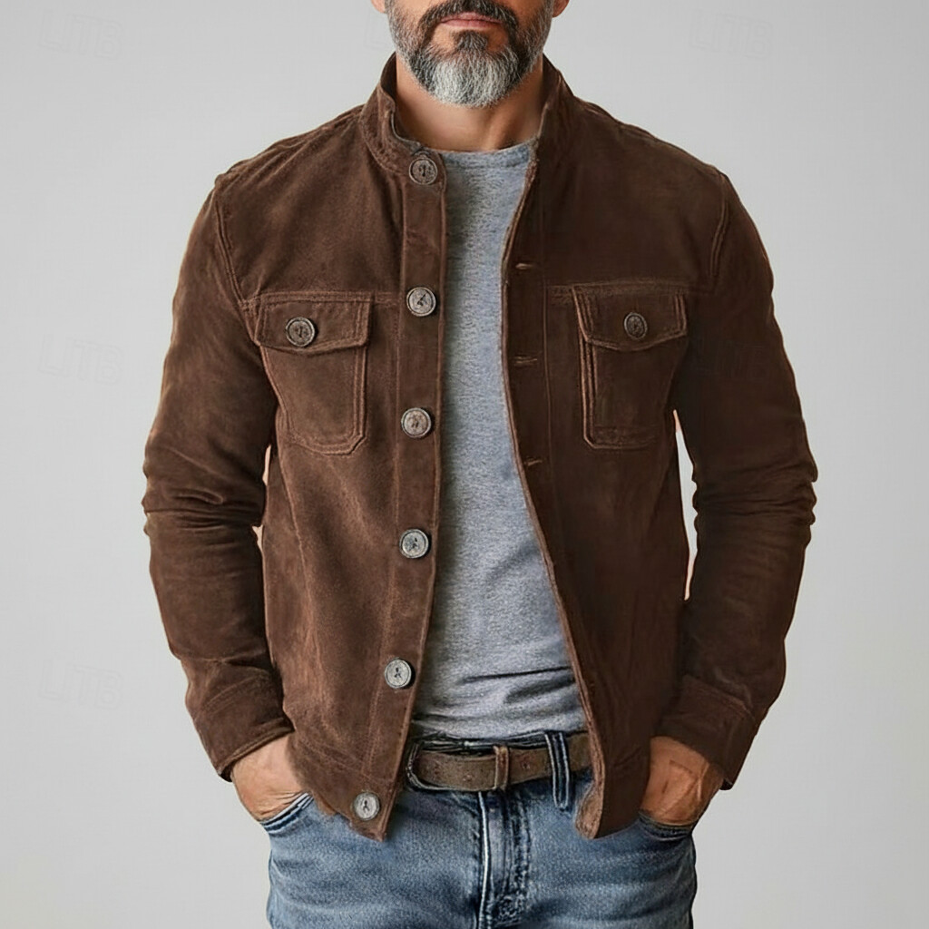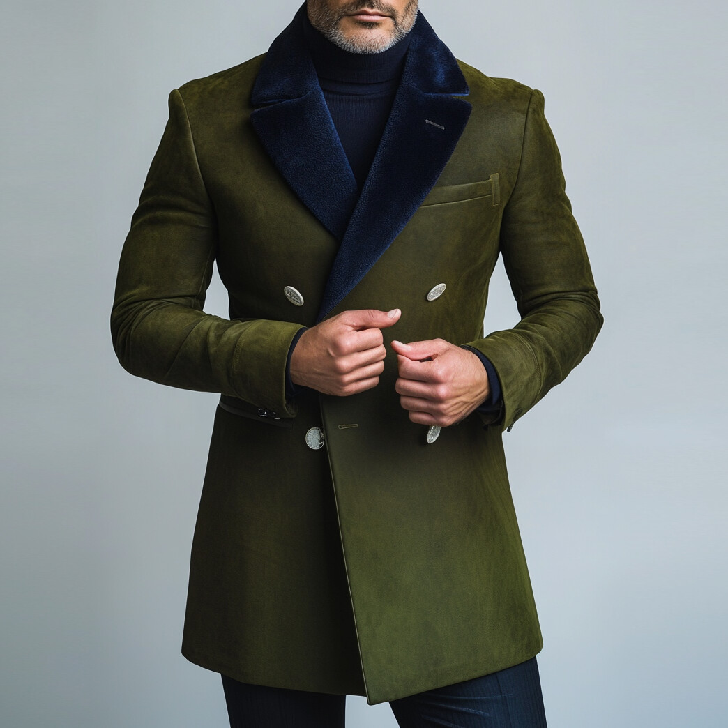 Men's Suede Two Tone Lapel Collar Double Breasted Long Blazer