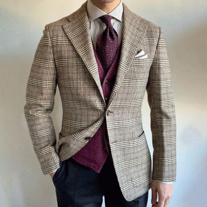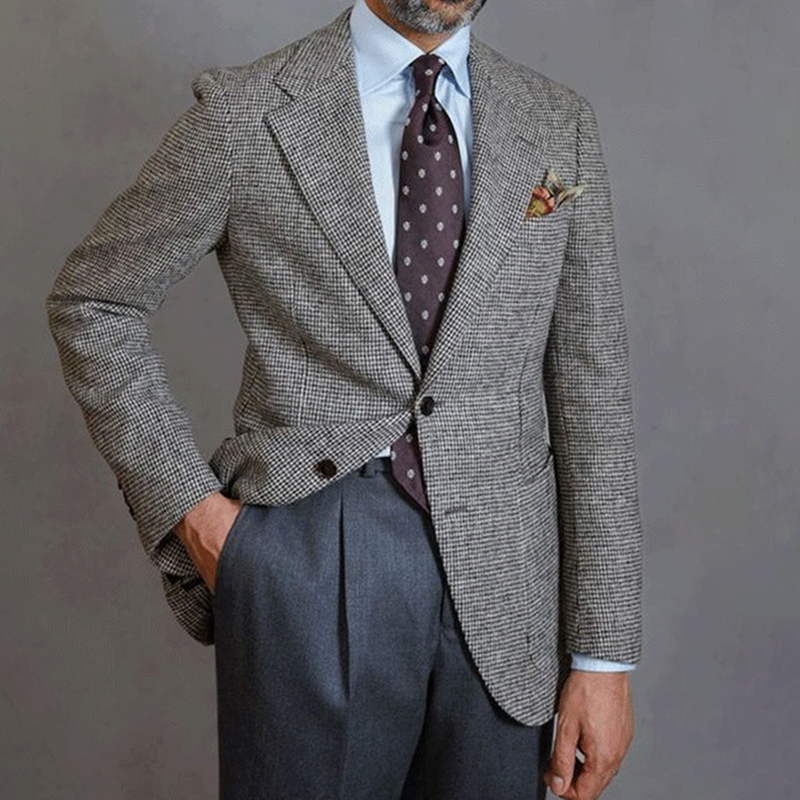 Men's Business Notch Lapel Two Button Chest Pocket Solid Blazer
