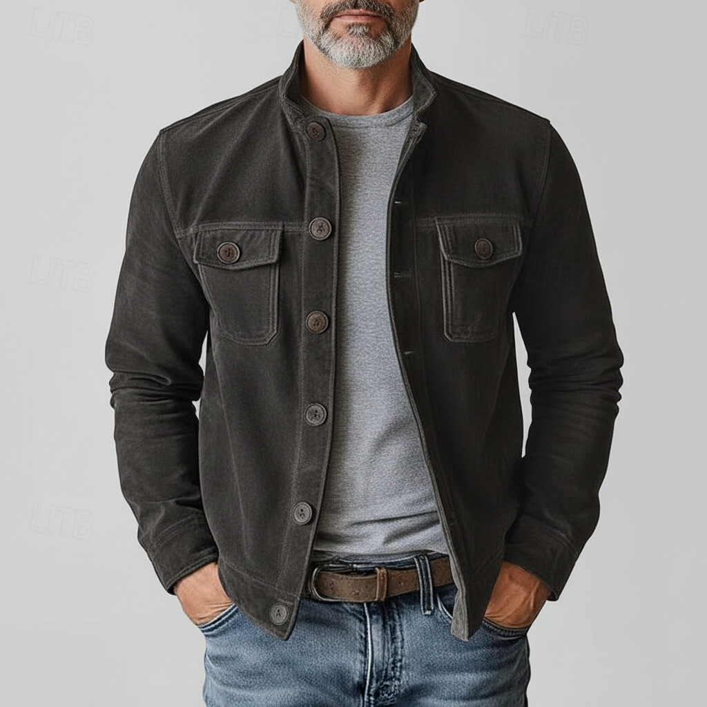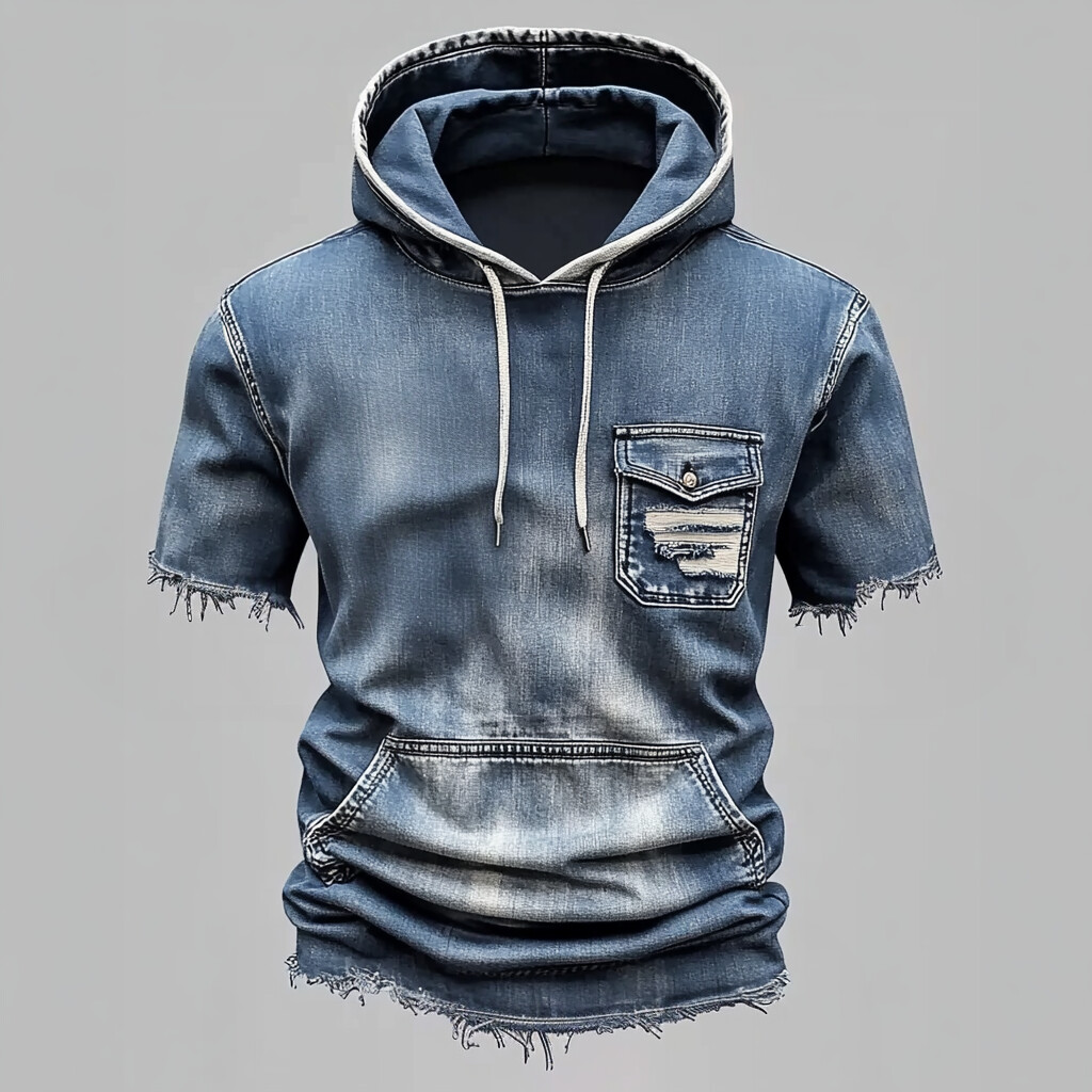 Men's Casual Denim Button Up Long Sleeve Hooded Shirt