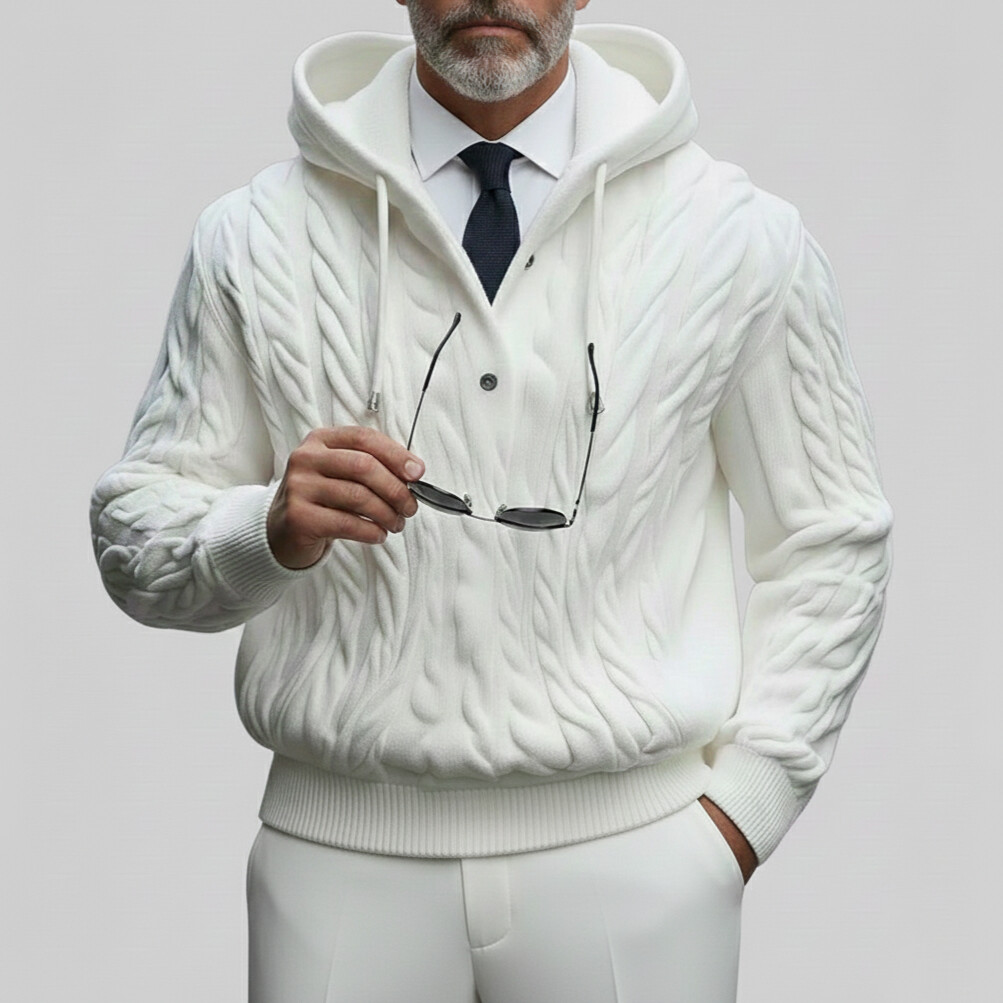 Men's PU Leather Two Tone Pocket Long Sleeve Drawstring Hoodie