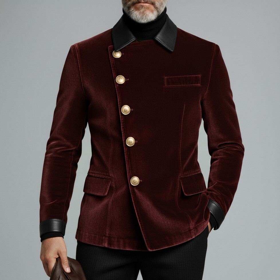 Men's PU Leather Color Blocks Chest Pocket Long Sleeve Shirt