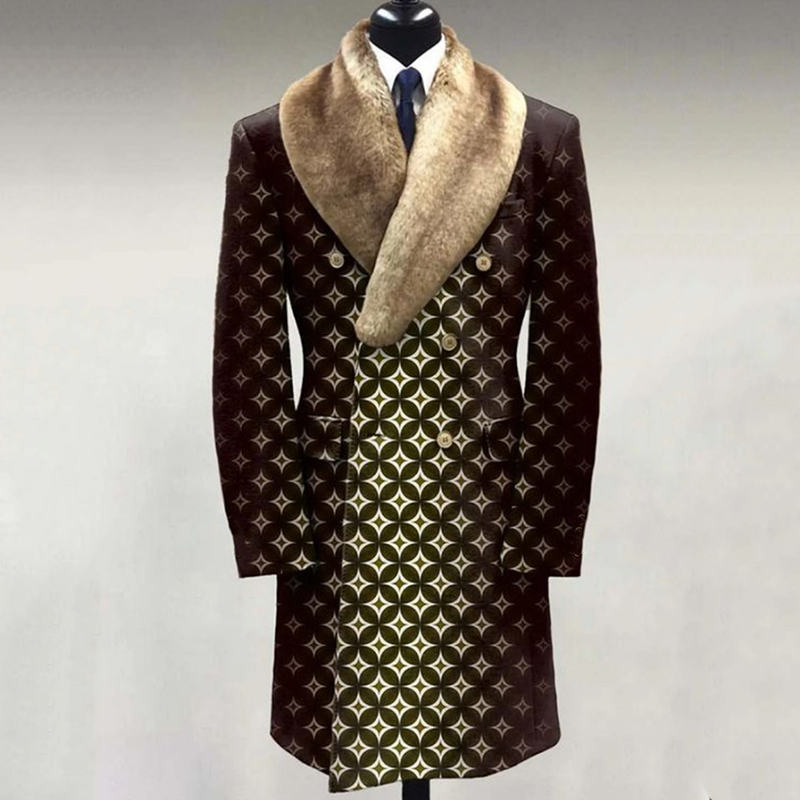 Casual Fur Lapel Collar Graphic Pattern Long Sleeve Coat