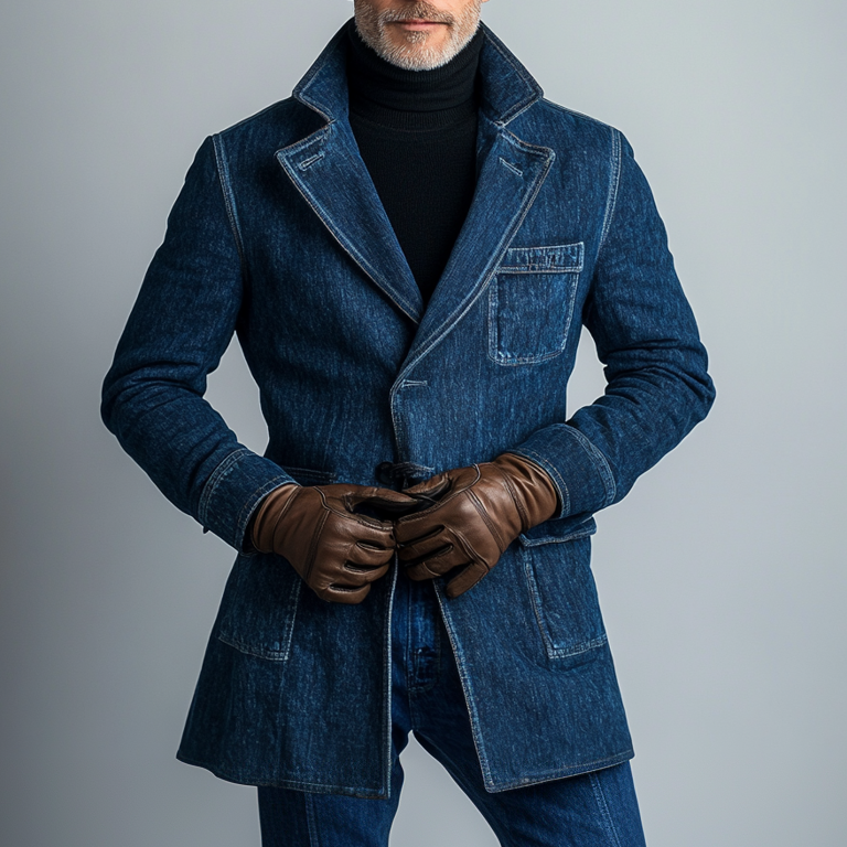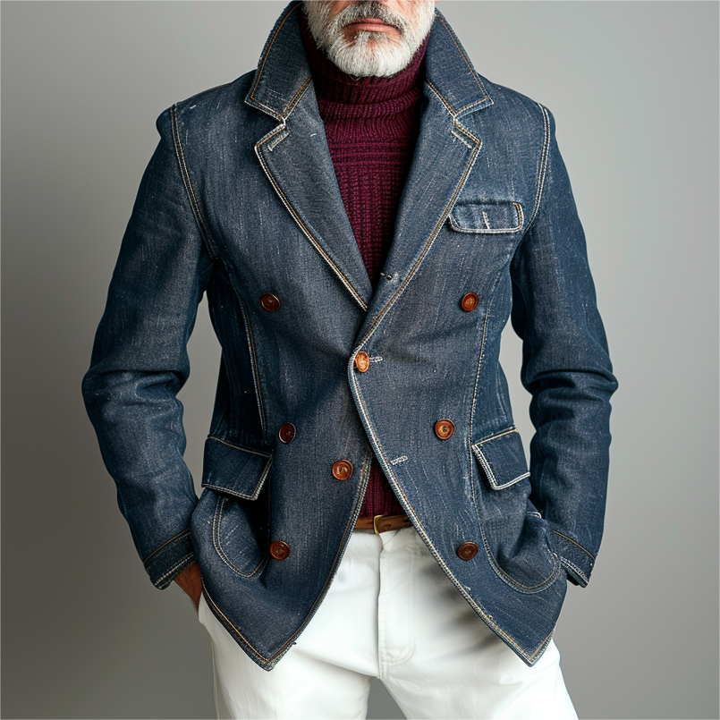 Men's Business Denim Notch Lapel Buttons Flap Pocket Blazer