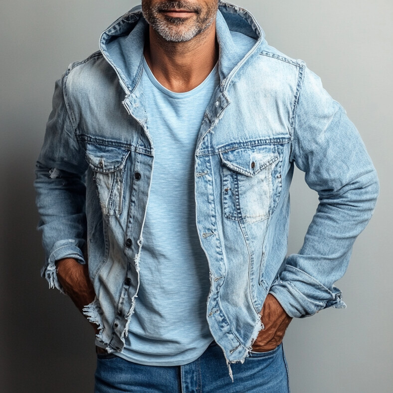 Men's Distressed Gradient Denim Single Breasted Hooded Vest