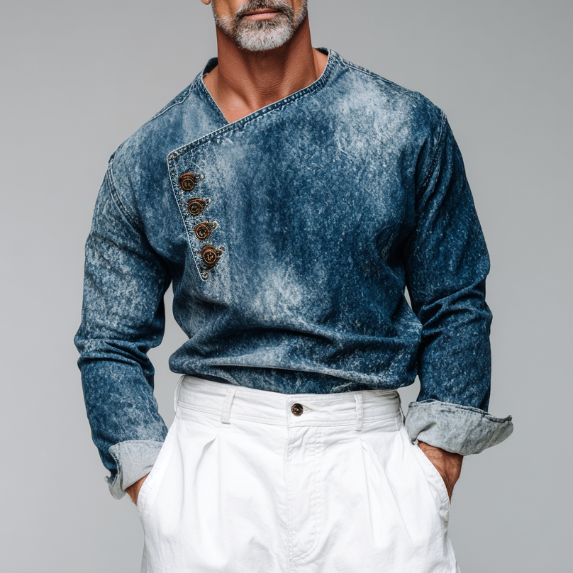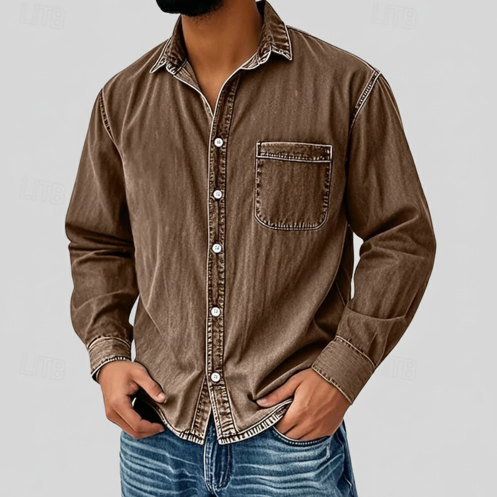 Men's Retro Turndown Collar Button Denim Long Sleeve Shirt