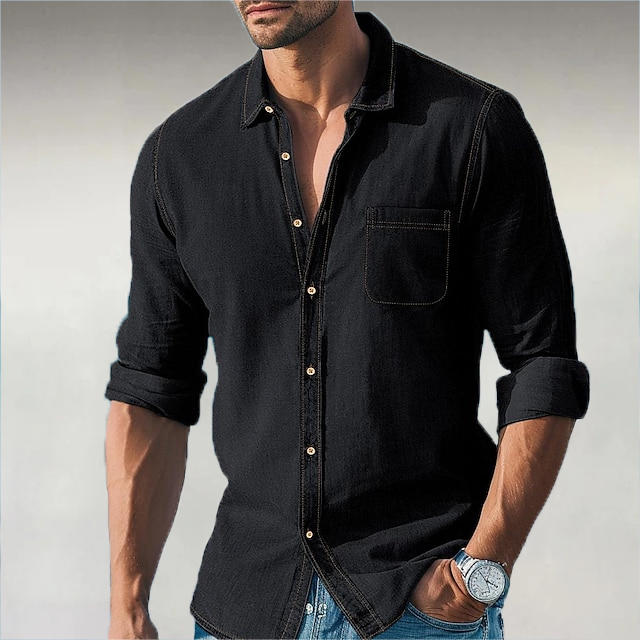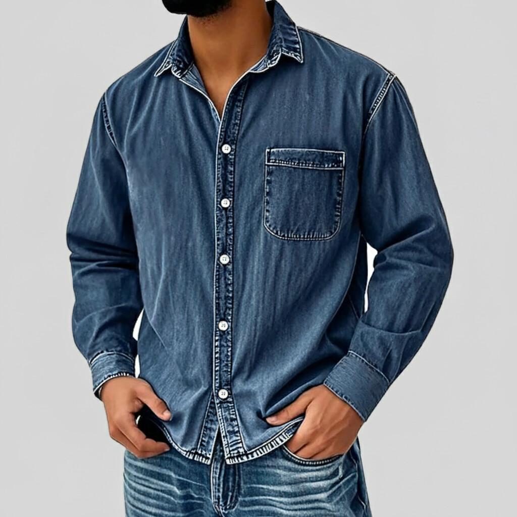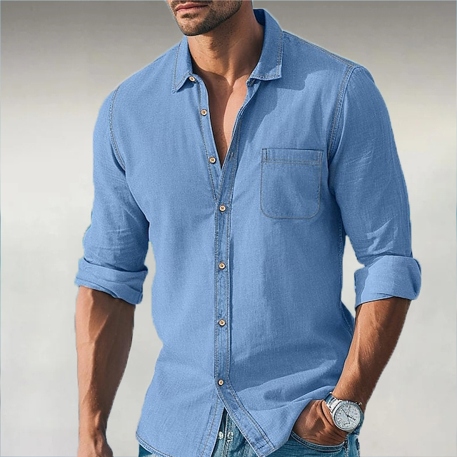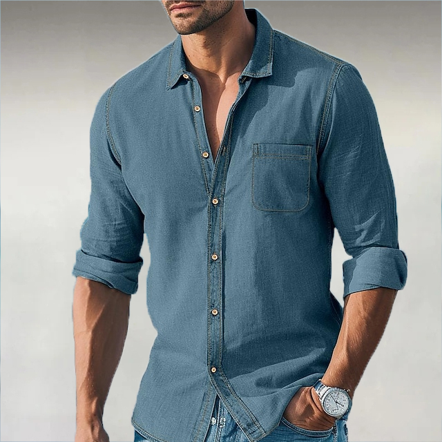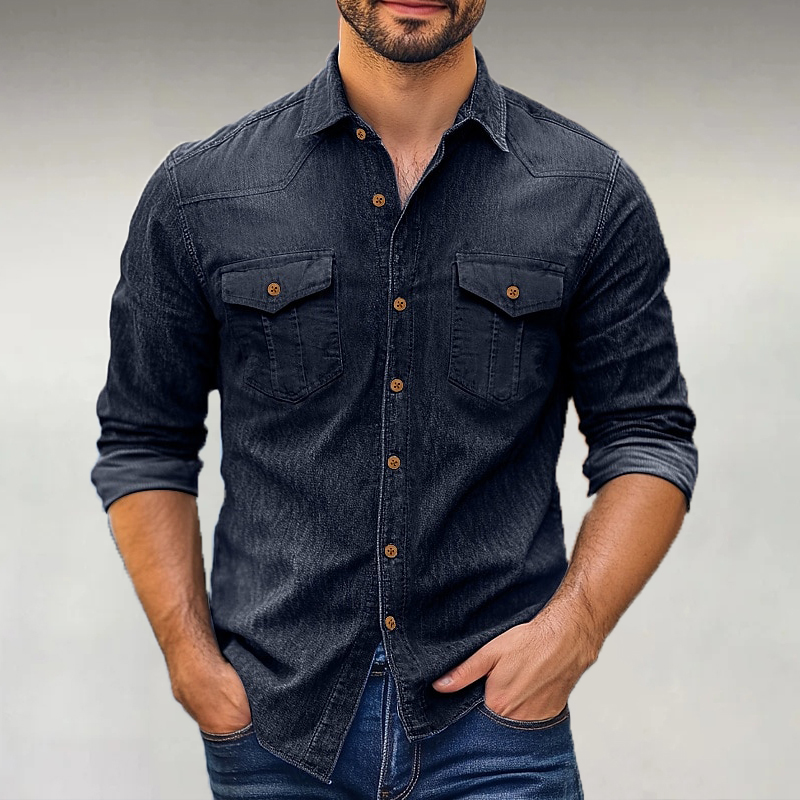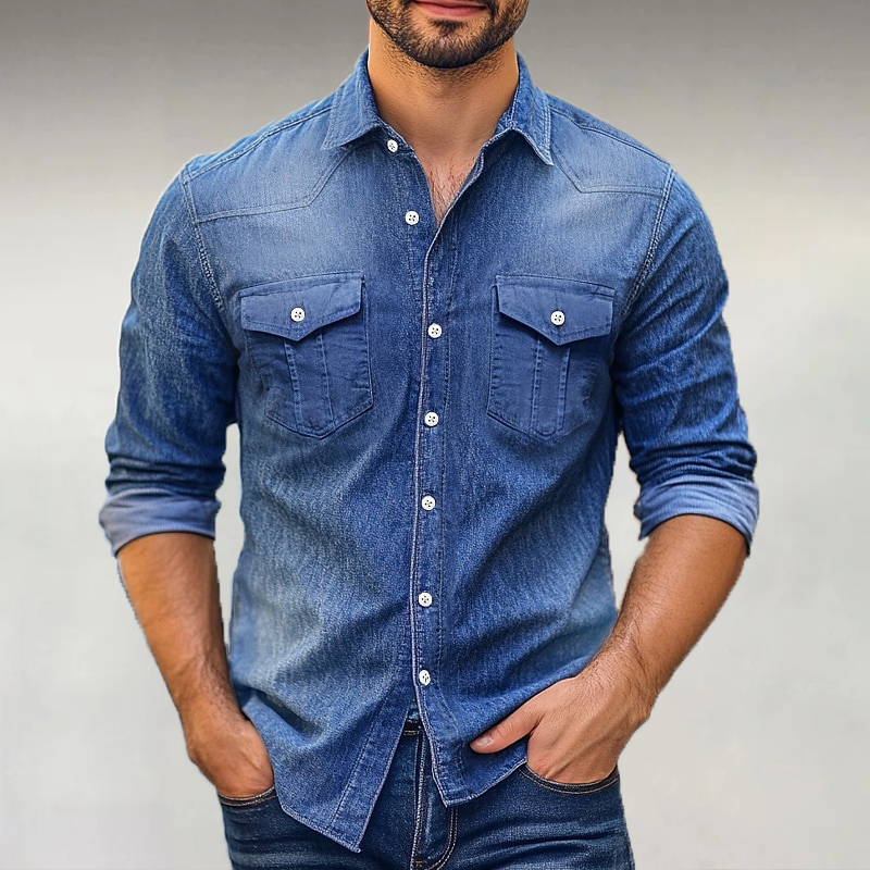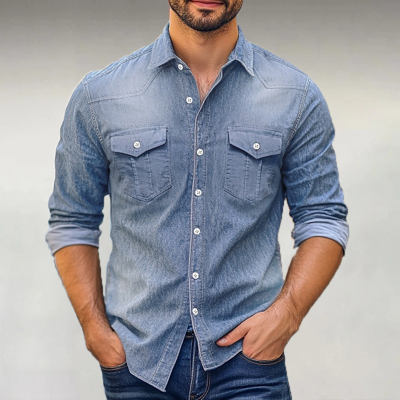 Men's Casual Solid Color Denim Long Sleeve Shirt