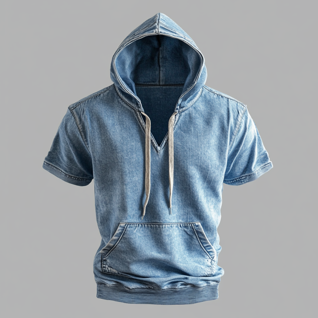 Men's Casual Raw Edge V Neck Long Sleeve Denim T-Shirt