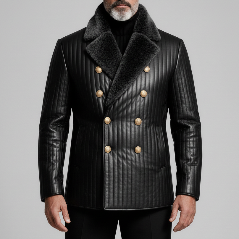Men's Retro Peak Lapel Patchwork Alligator Pattern PU Leather Blazer