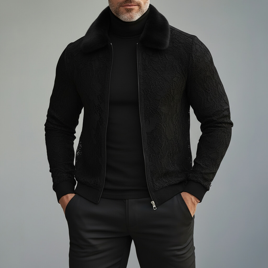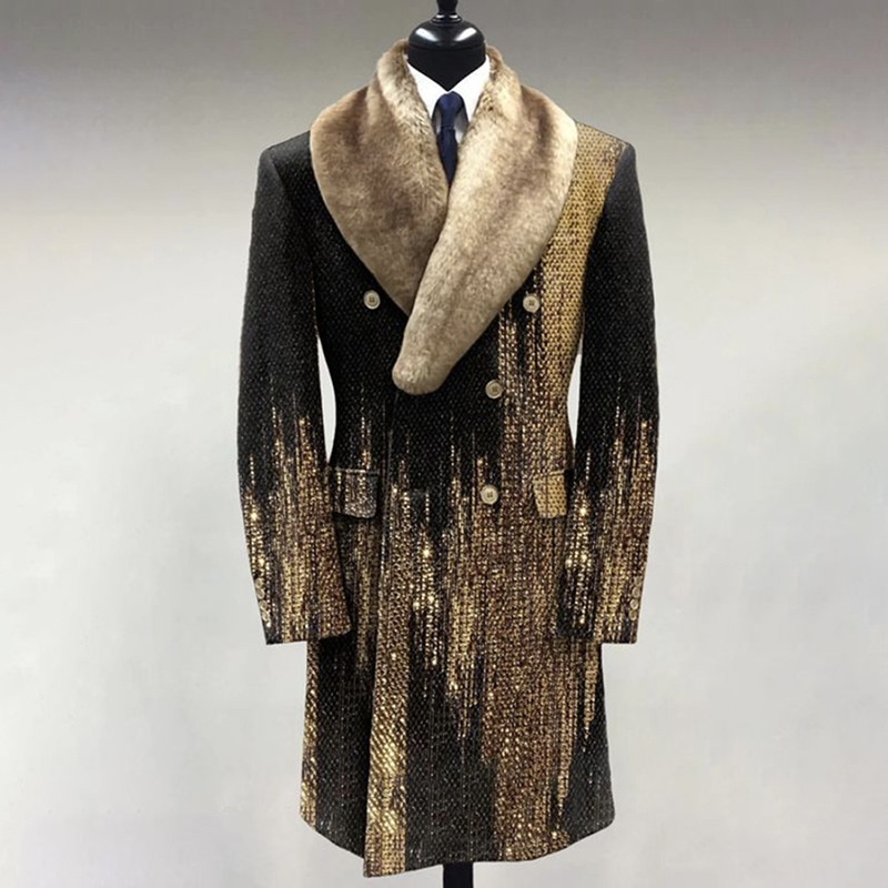 Men’'s Casual Fur Lapel Collar Graphic Pattern Long Sleeve Coat