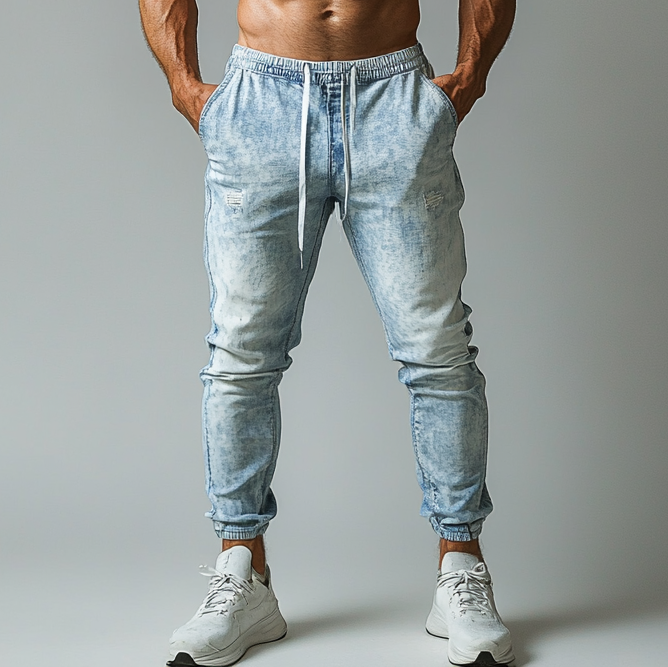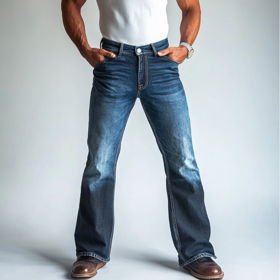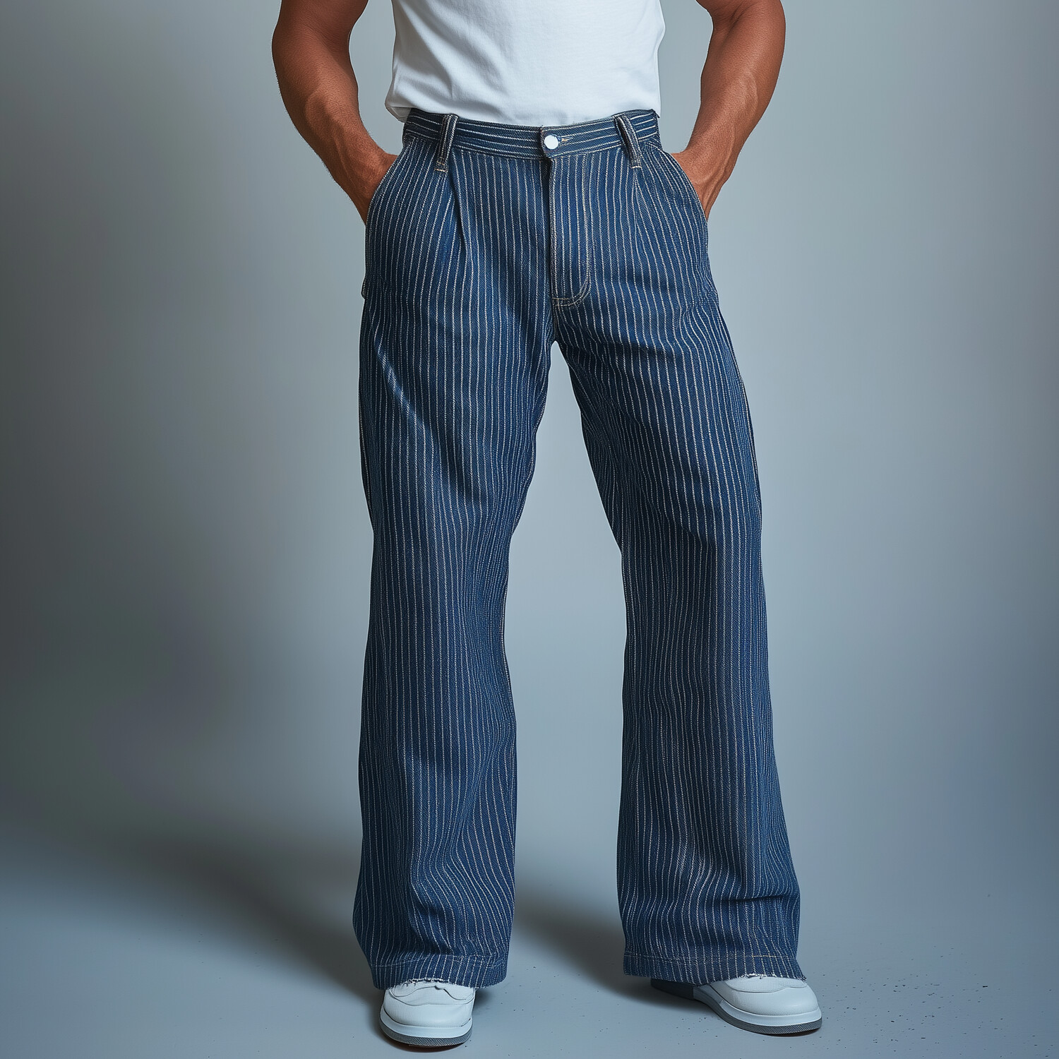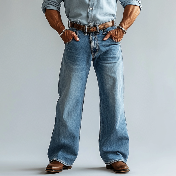 Men's Casual Washed Denim Pocket Wide Leg Jeans