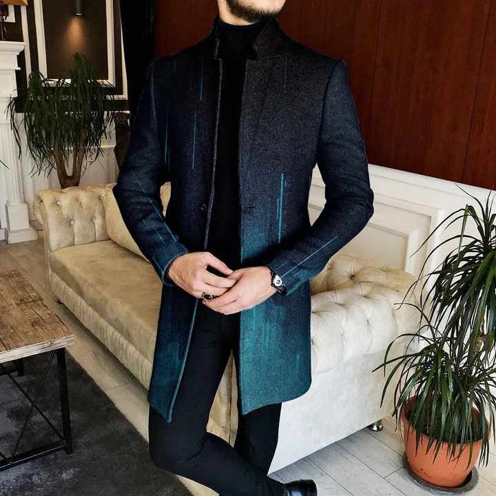 Men's Stand Collar Long Sleeve Hollow Out Knitted Zip Up Jacket
