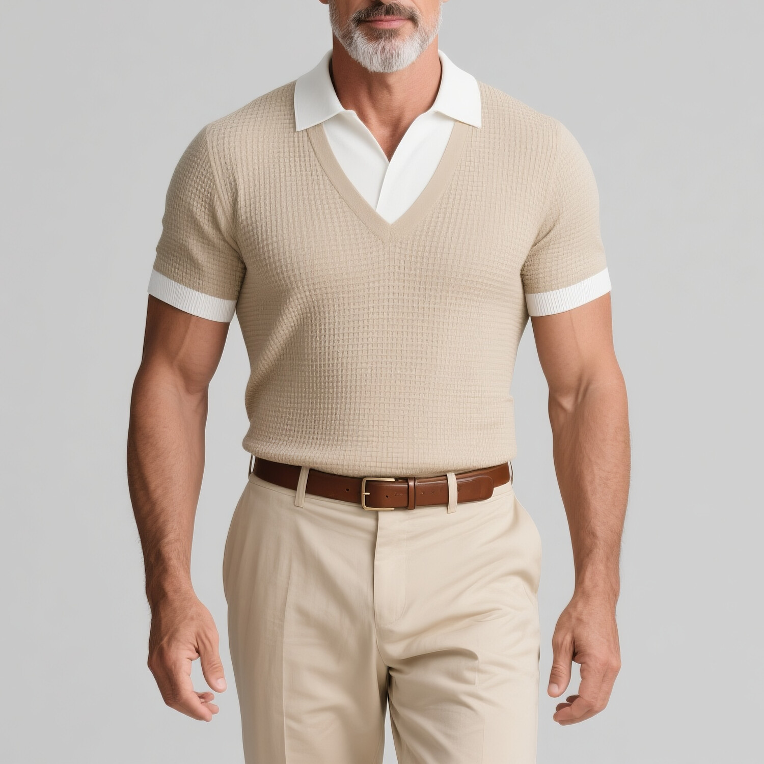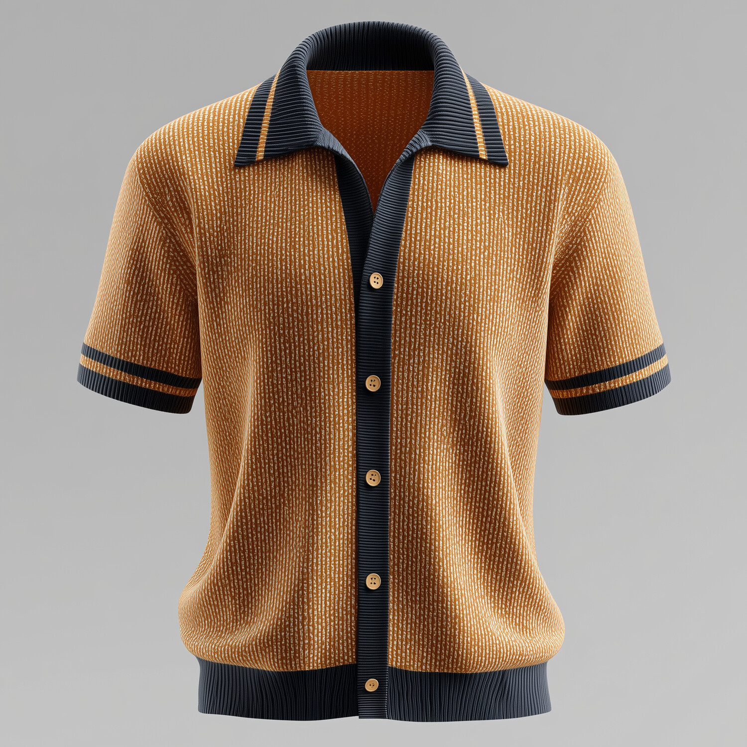 Men's PU Leather Color Blocks Chest Pocket Long Sleeve Shirt